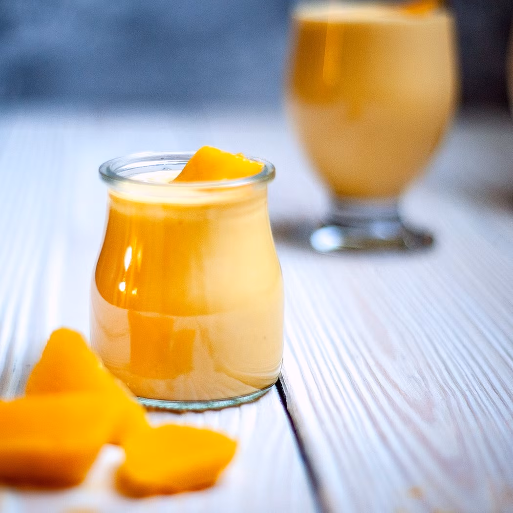 Si lo vas a servir al momento, puedes añadir unos cubitos de hielo para que esté más frío. Aunque no demasiados, ya que no querrás diluir el rico sabor a mango.