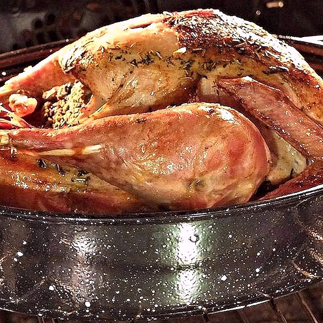 Hornea durante 3.5 a 4 horas. Es importante que bañes constantemente el pavo con los jugos de la bandeja.